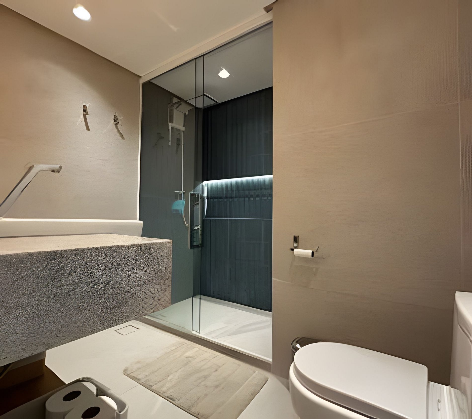 O banheiro é espaçoso e completo, garantindo ainda mais conforto